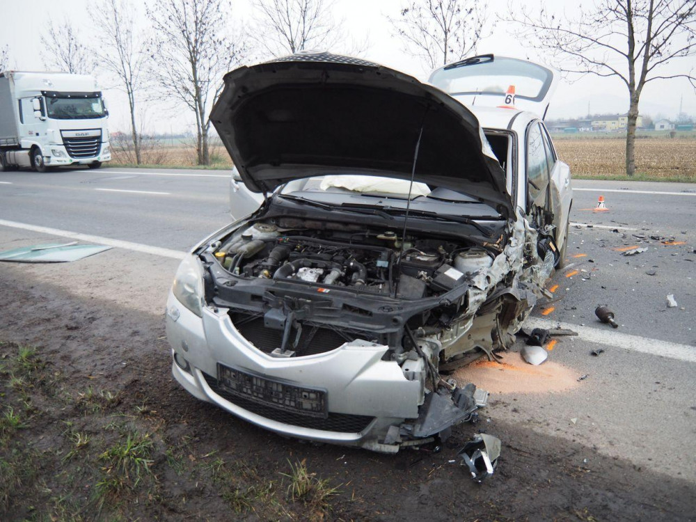 FOTO: Kvůli předjíždění došlo k nehodě čtyř vozidel, tři řidiči byli lehce zraněni