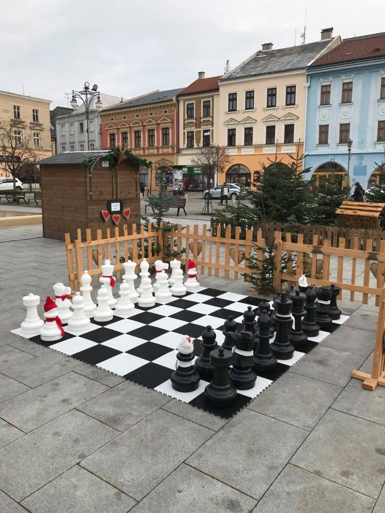 Lidé v Hranicích si mohou na náměstí zahrát obří šachy