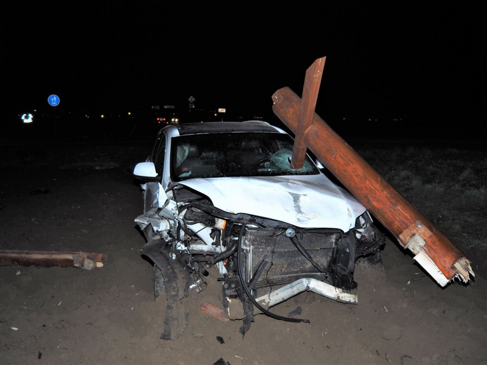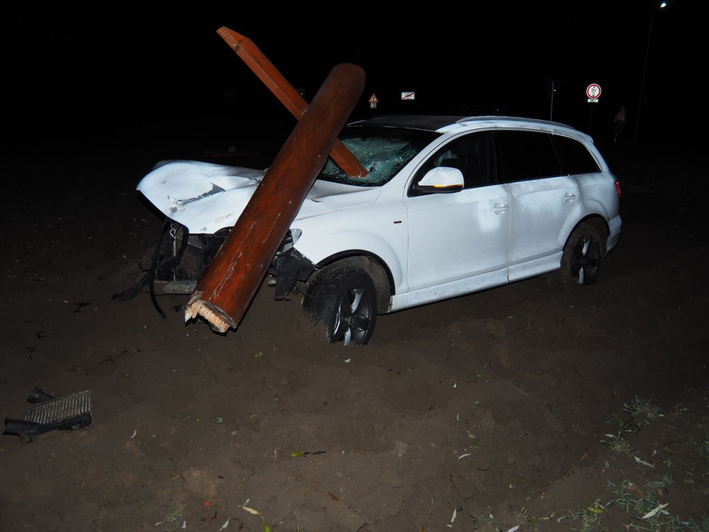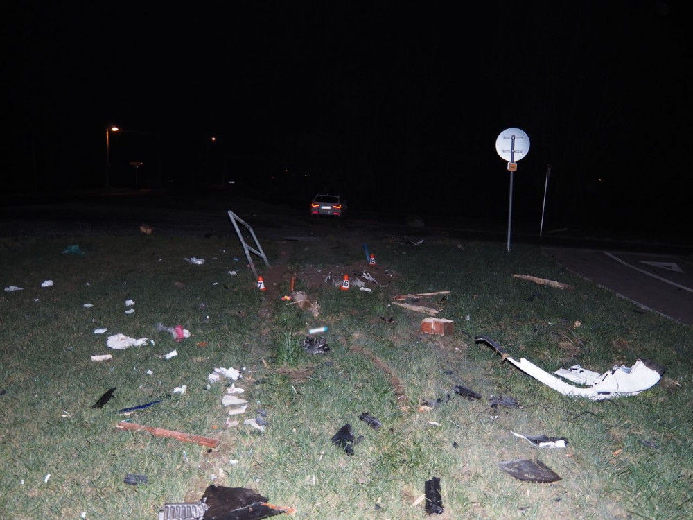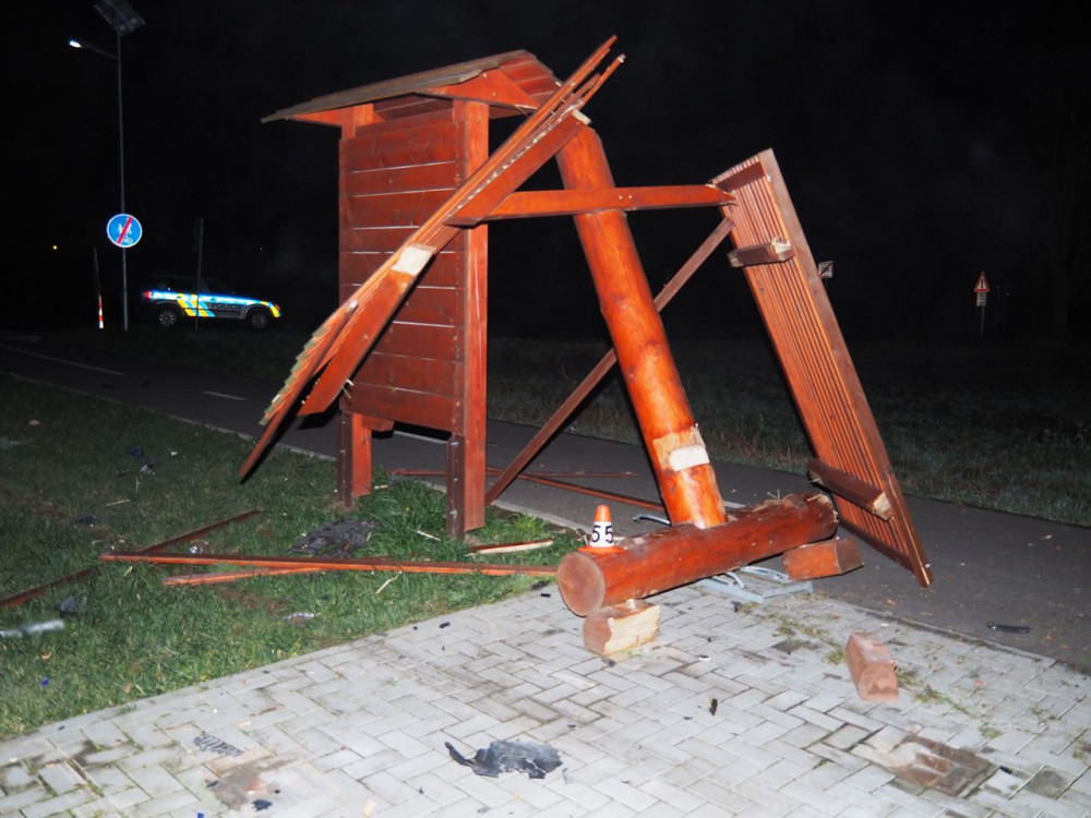 Řidič Audi nezvládl zatáčku a vrazil do dřevěného přístřešku u cyklostezky