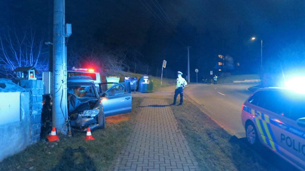 Opilý mladík nezvládl rychlou jízdu ze Sv. Kopečku. V Samotiškách boural do sloupu