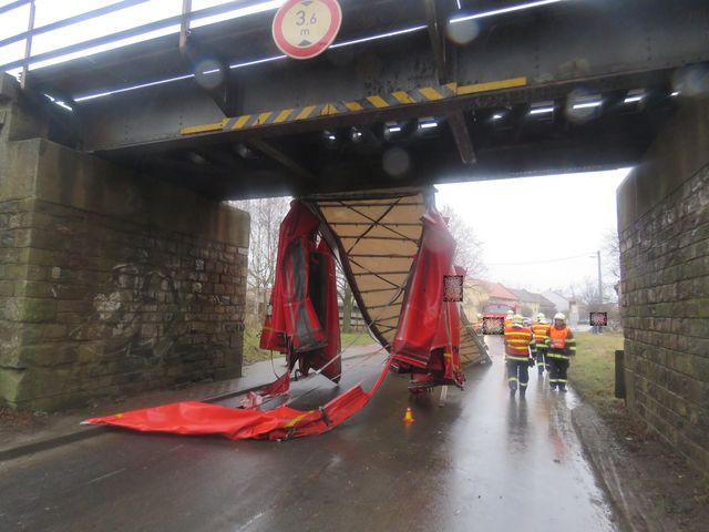 Řidič neodhadl výšku mostu, svému náklaďáku urazil korbu