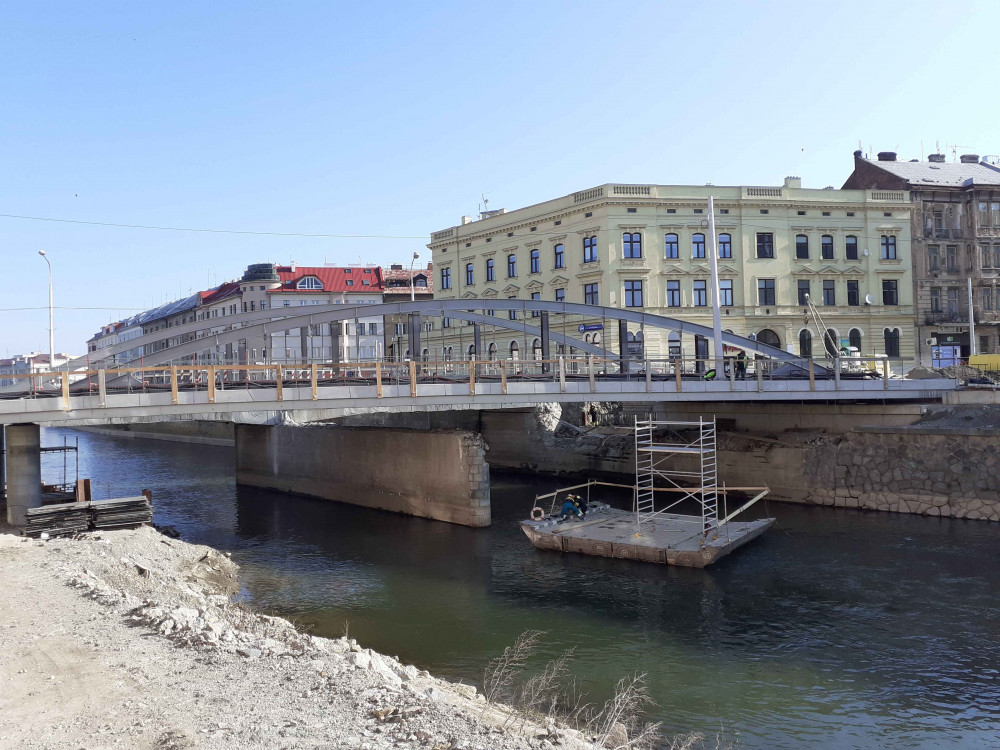 Na řadě je druhá půlka mostu přes Moravu. Koridor pro pěší se přesune