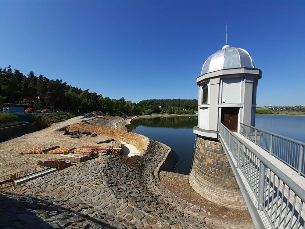 Po dokončení části stavebních prací na hrázi plumlovské přehrady je ve vodní nádrži stále nižší stav vody