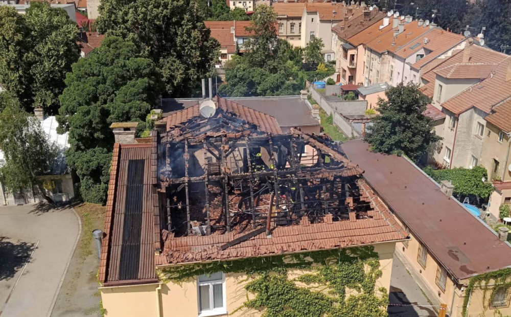 Požár zachvátil budovu v Prostějově, zničil krovní část a patro