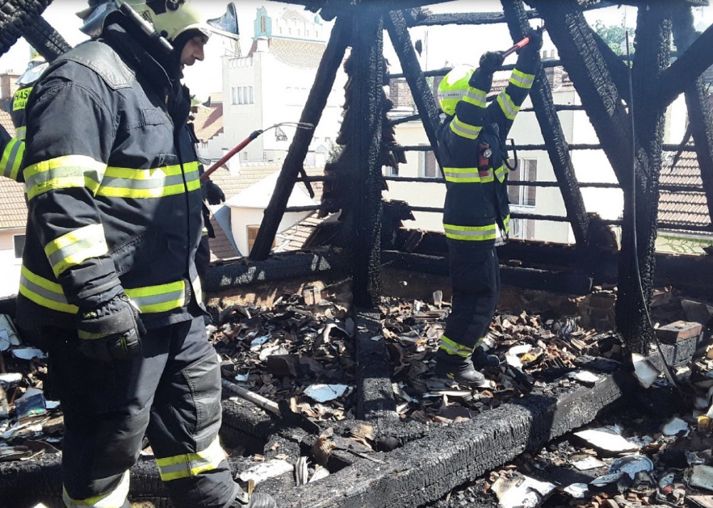 Požár zachvátil budovu v Prostějově, zničil krovní část a patro.