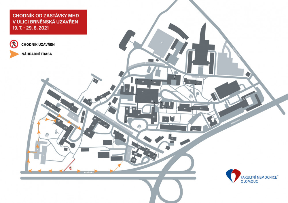 Chodník od zastávek MHD do Fakultní nemocnice Olomouc bude uzavřený