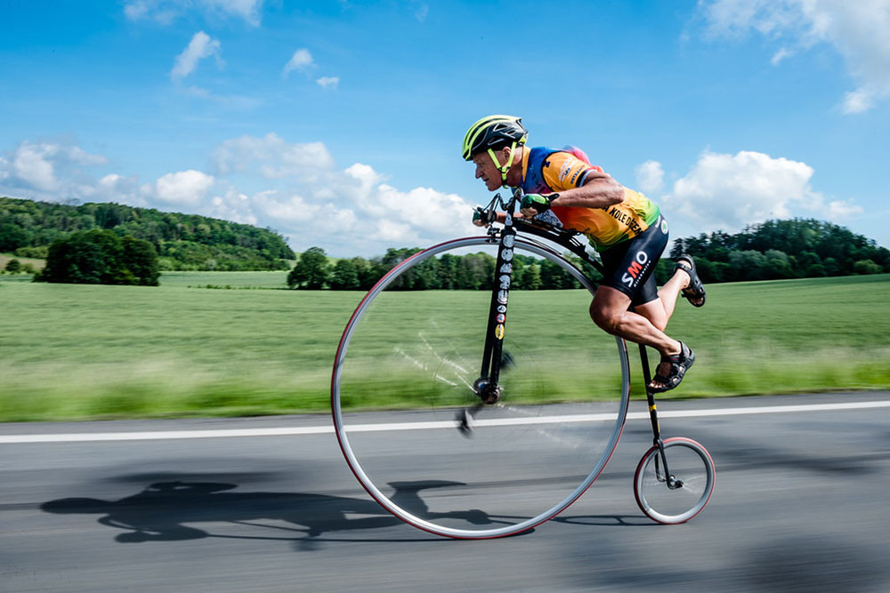 Zakladatel nadace Na kole dětem Josef Zimovčák na velocipedu projíždí s charitativními projekty Českou republikou