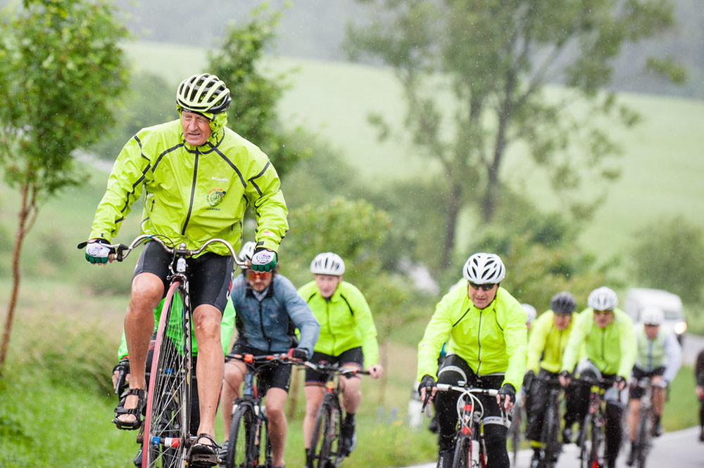 Velocipedista Josef Zimovčák s pelotonem cyklistů projíždí každoročně republikou pro nadační fond Na kole dětem