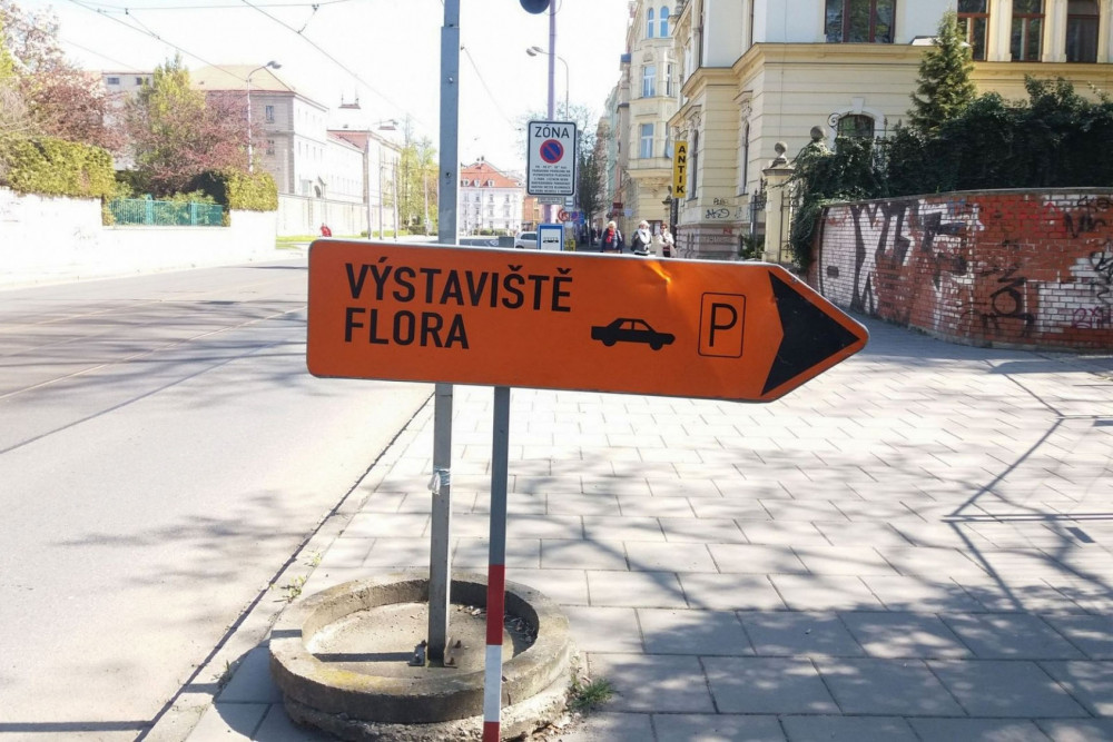 Dopravní značení navede řidiče na odstavné parkovací plochy nedaleko Výstaviště Flora Olomouc