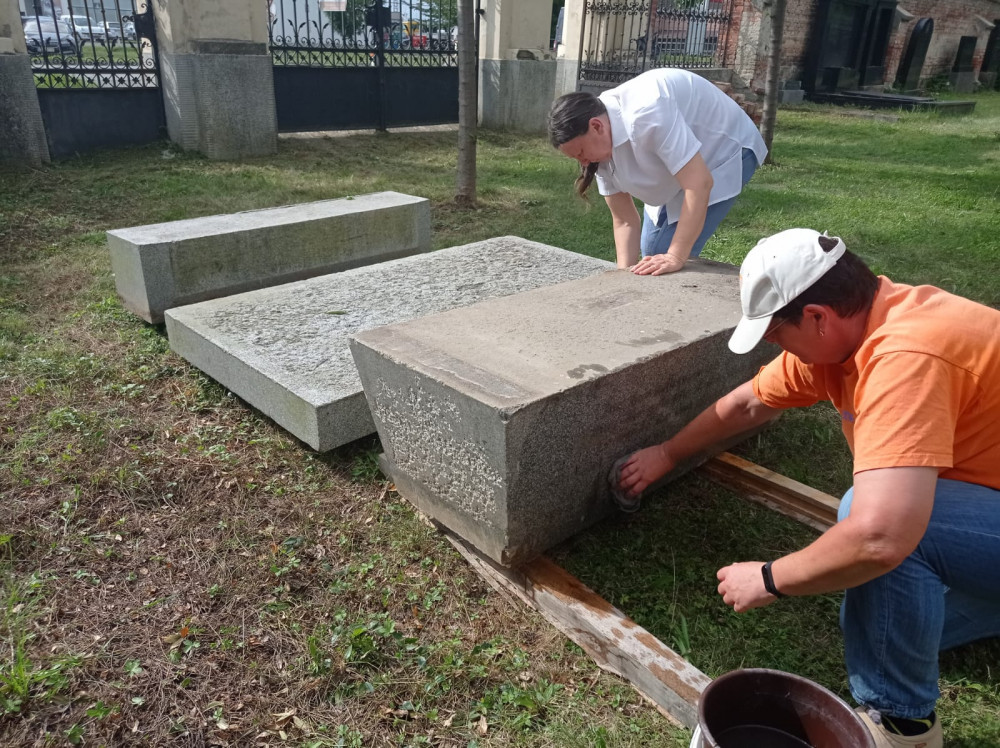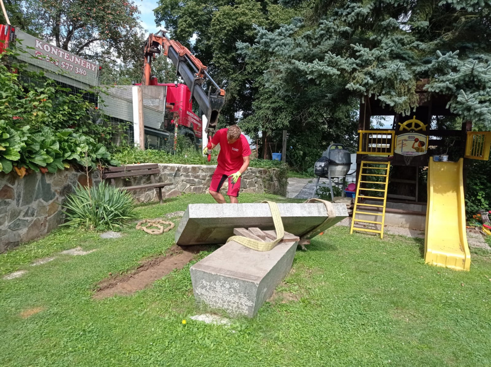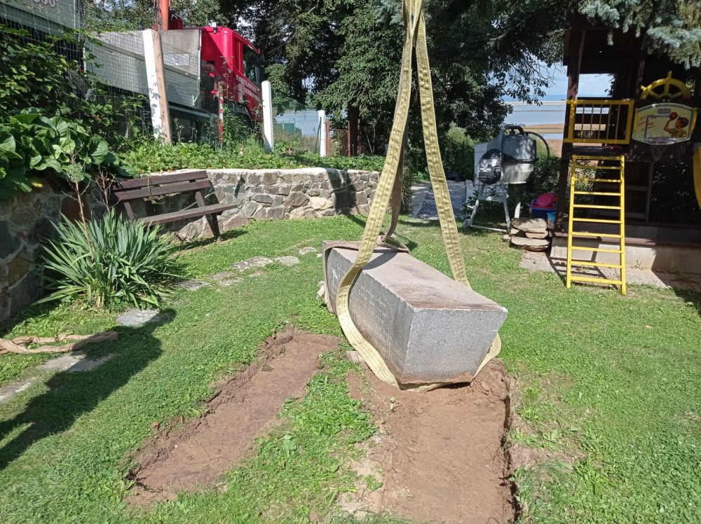 Spolek Hanácký Jeruzalém dnes vyzvedl několikatunový náhrobek ze zahrady na Plumlově