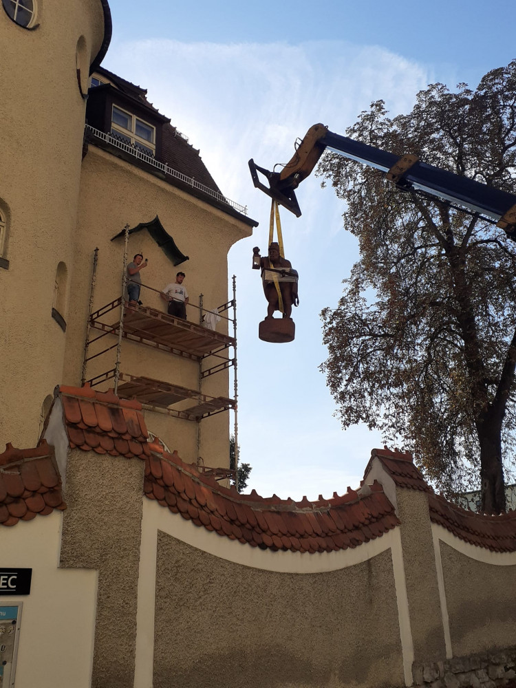 Do výklenku olomoucké Vily Primavesi se po 70 letech vrátila socha ponocného