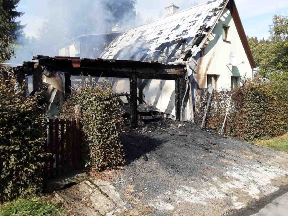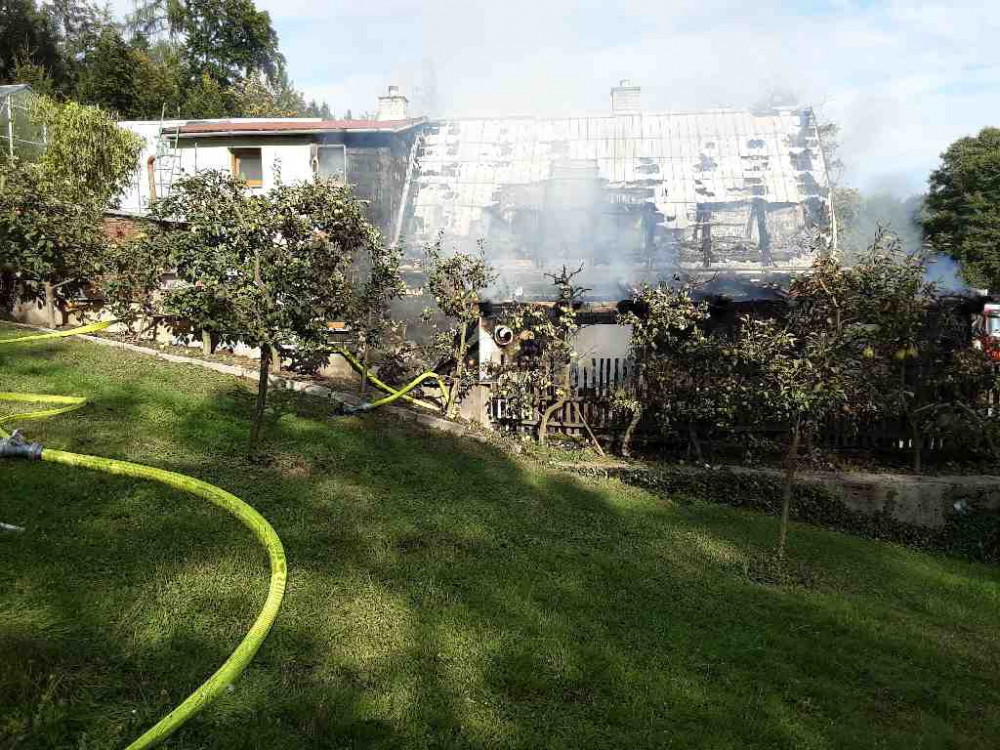 Při požáru rodinného domu v Bušíně na Šumpersku se zranil jeden člověk. Plameny hasilo pět jednotek