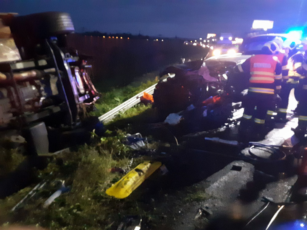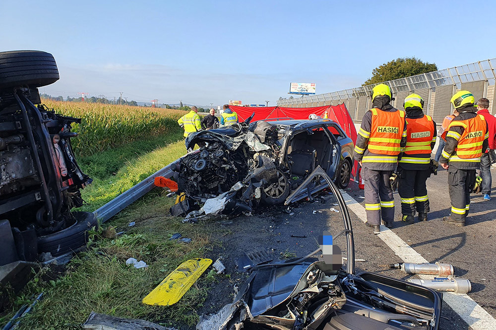 Ranní nehoda kamionu a osobního auta v Prostějově měla tragické následky. Jeden člověk zemřel, tři další se zranili