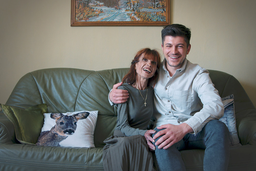 Evu Juroškovou a její sestru často potkávali Olomoučané v ulicích města. Na snímku s Lukášem Hodisem, jedním z autorů námětu dokumentu o osudu olomouckých dvojčat