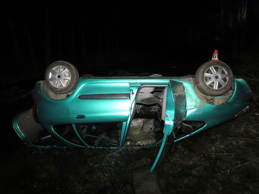 Opilý řidič se lekl lesní zvěře, s autem skončil na střeše v řece