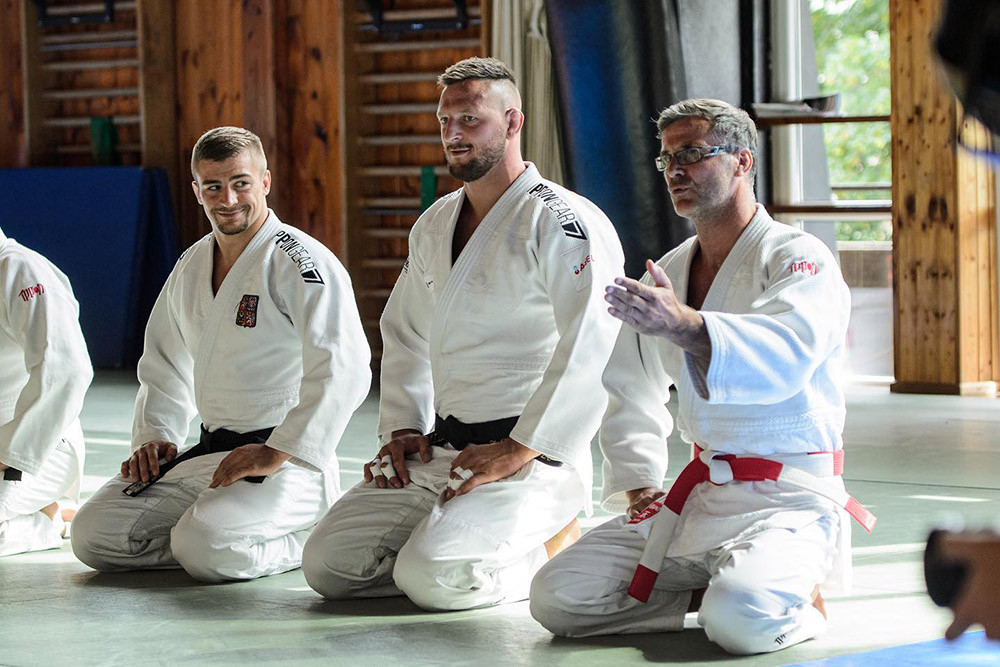 David Klammert (vpravo) v Tokiu s Lukášem Krpálkem a šéftrenérem reprezentace Petrem Lacinou