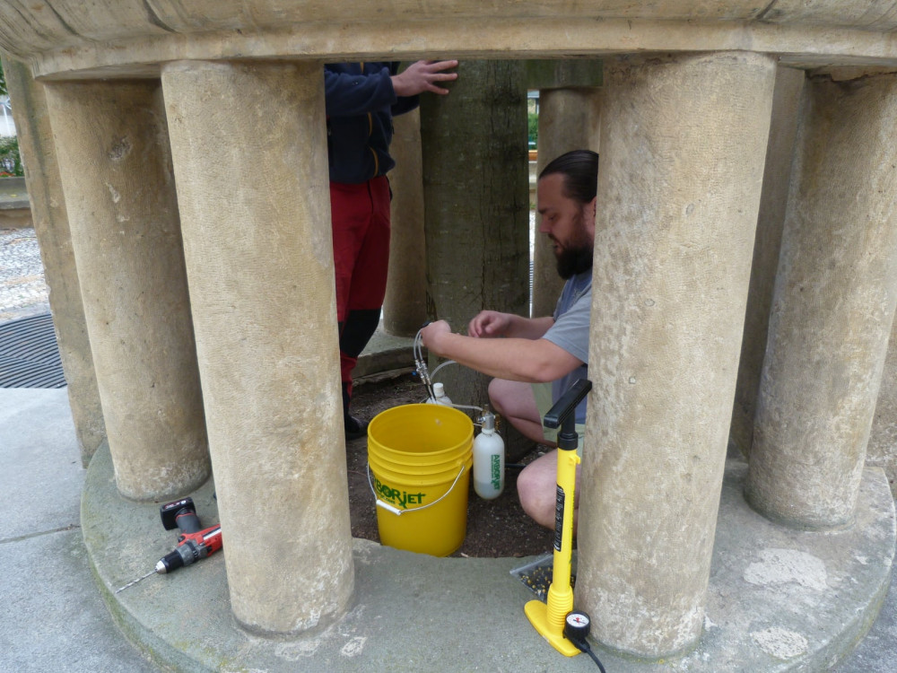 Lípa před prostějovským divadlem chřadne. Nyní dostala injekci živin