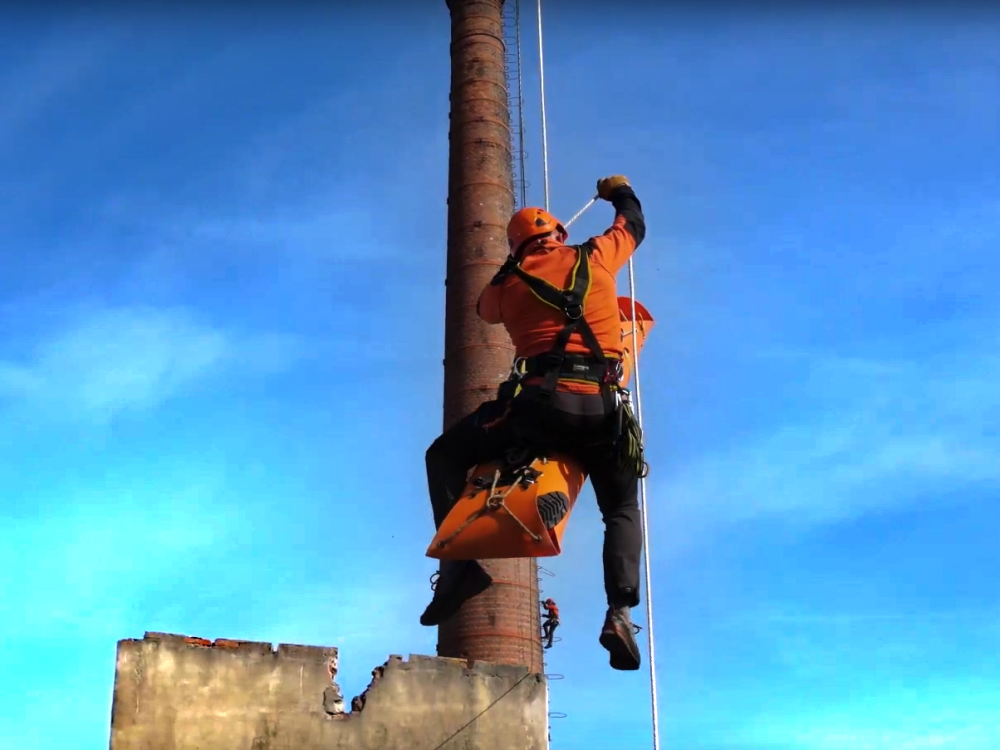 Hasiči nacvičovali záchranu osob ve výškách. Na Jesenicku využili šedesát metrů vysoký komín