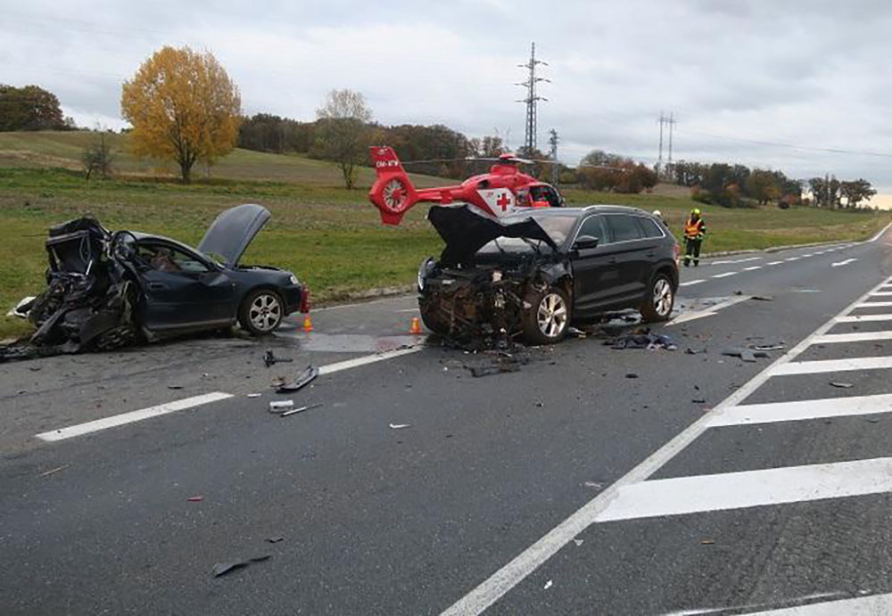 Střet tří vozidel u Krčmaně skončil tragicky. Řidič osobního auta nehodu nepřežil