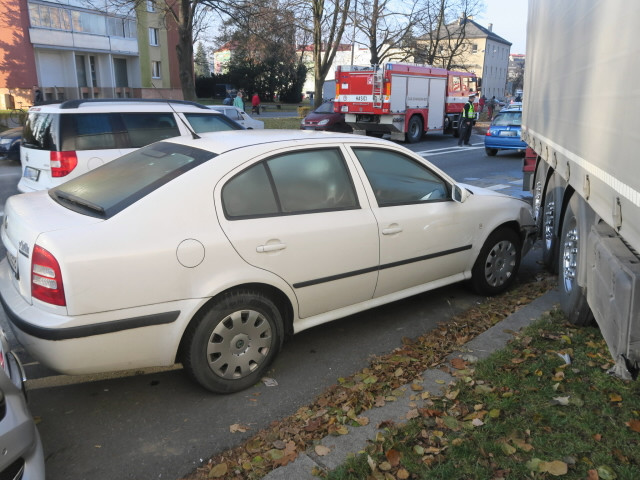 Kamion v Přerově naboural šest aut. Řidiče přepadly náhlé zdravotní problémy