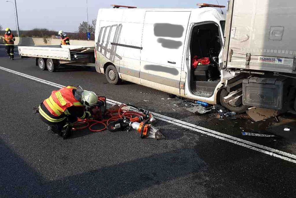 Z dodávky museli dvě zraněné osoby vyprostit hasiči