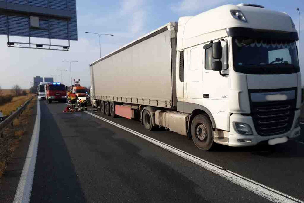 Komplikace na dálnici do Olomouce. Při srážce s kamionem se zranili dva lidé v dodávce