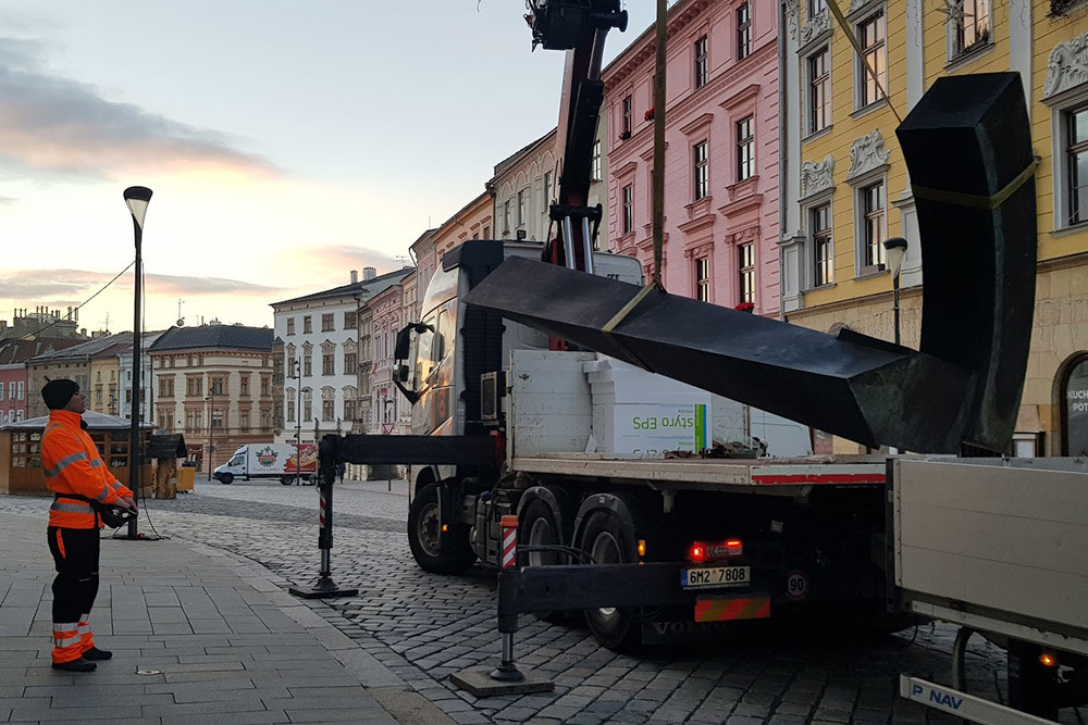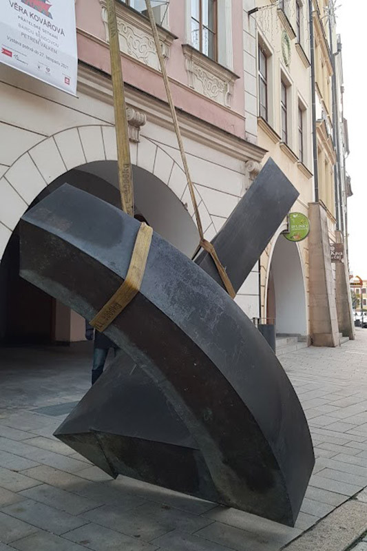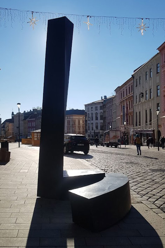 Bronzová socha Torsion na Dolním náměstí v Olomouci. Díla získaná díky Sochařskému festivalu Sculpture Line mají své místo v olomouckých ulicích už několik let