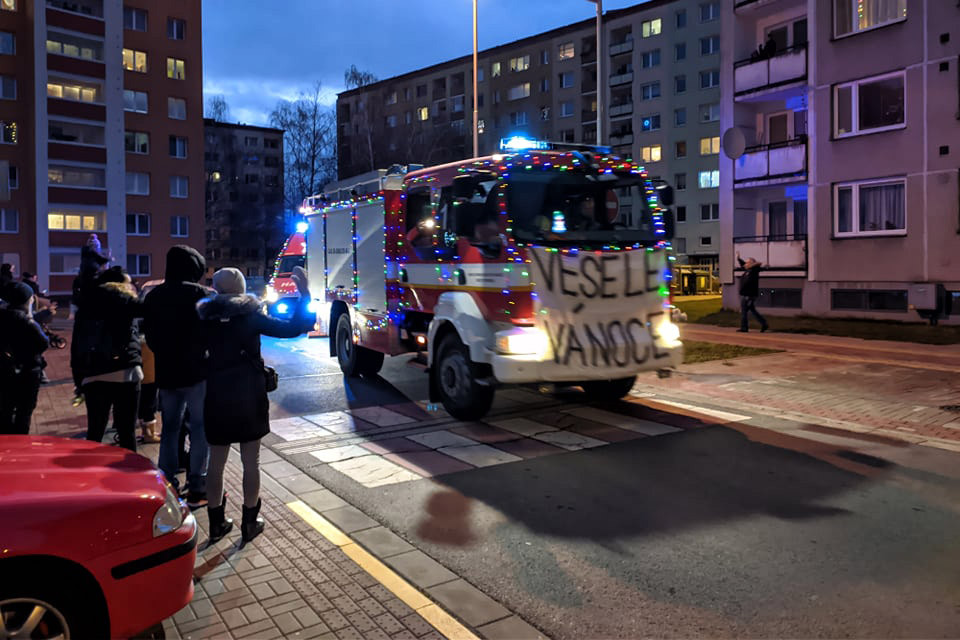 Předvánoční jízda dobrovolných hasičů v Přerově