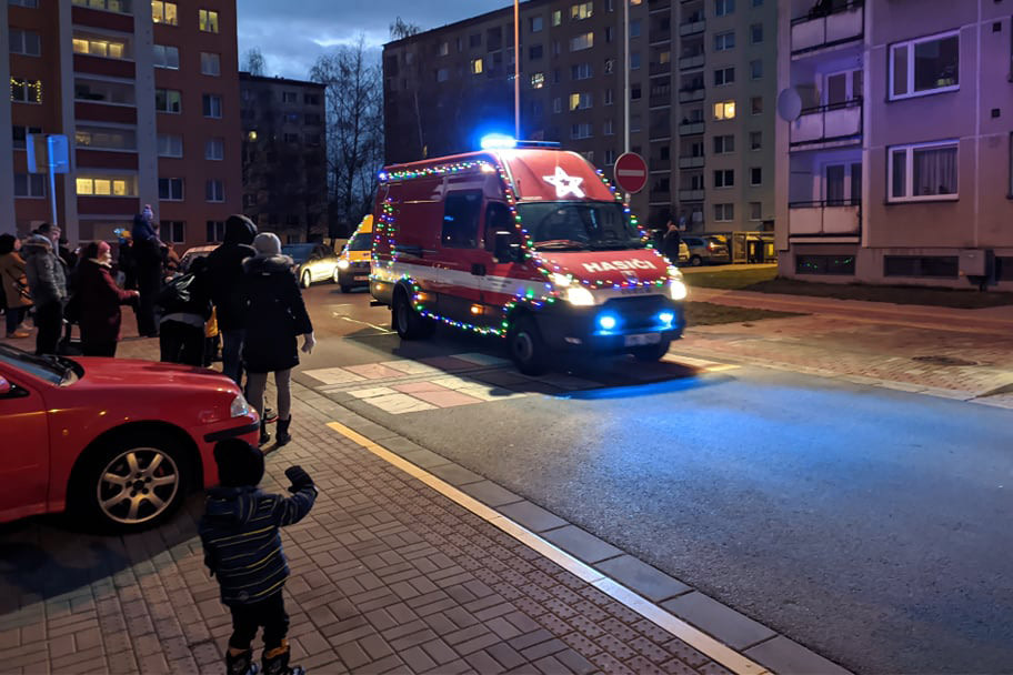 Předvánoční jízda dobrovolných hasičů v Přerově