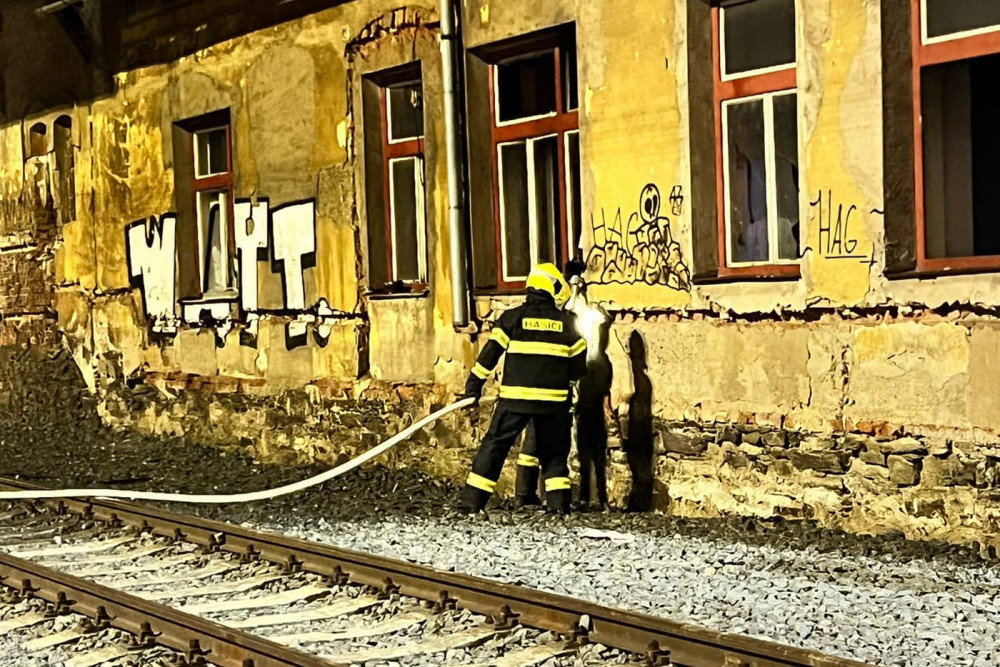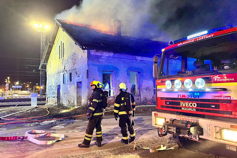 Požár opuštěné budovy v areálu nádraží ve Šternberku