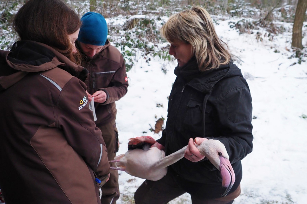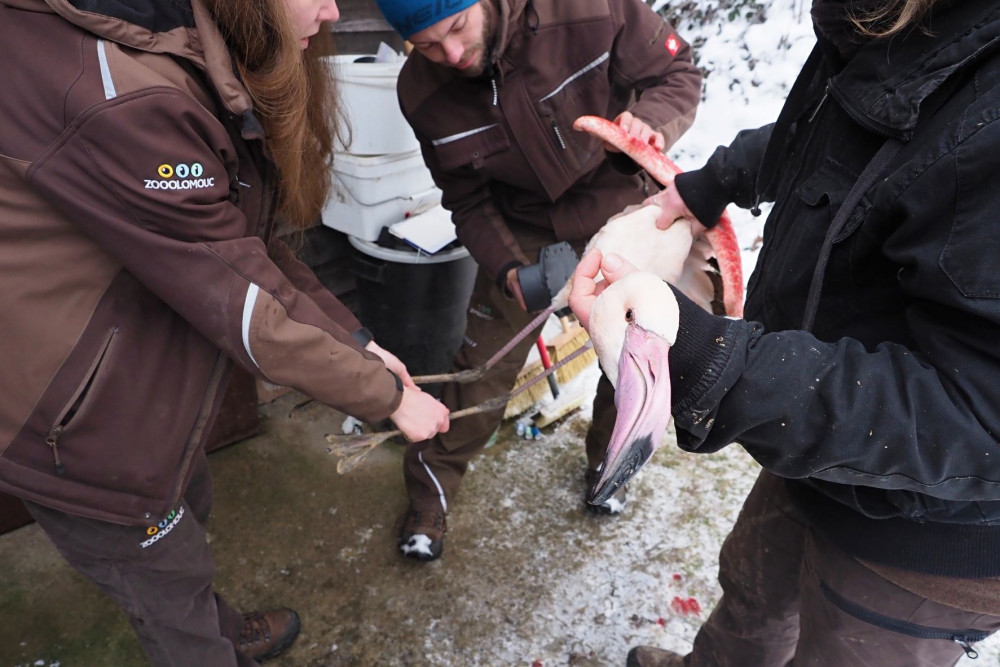 Chovatelé kontrolovali plameňáky. Někteří v zoo žijí od založení chovu v roce 1978