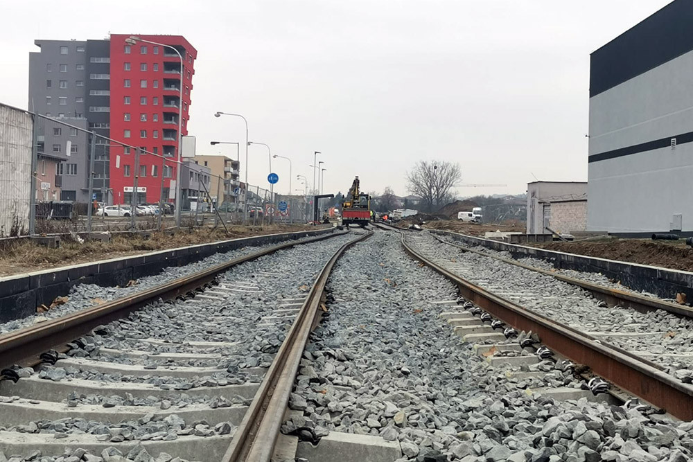 Stavba tramvajové trati v olomoucké ulici Schweitzerova