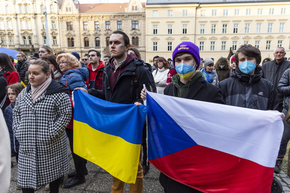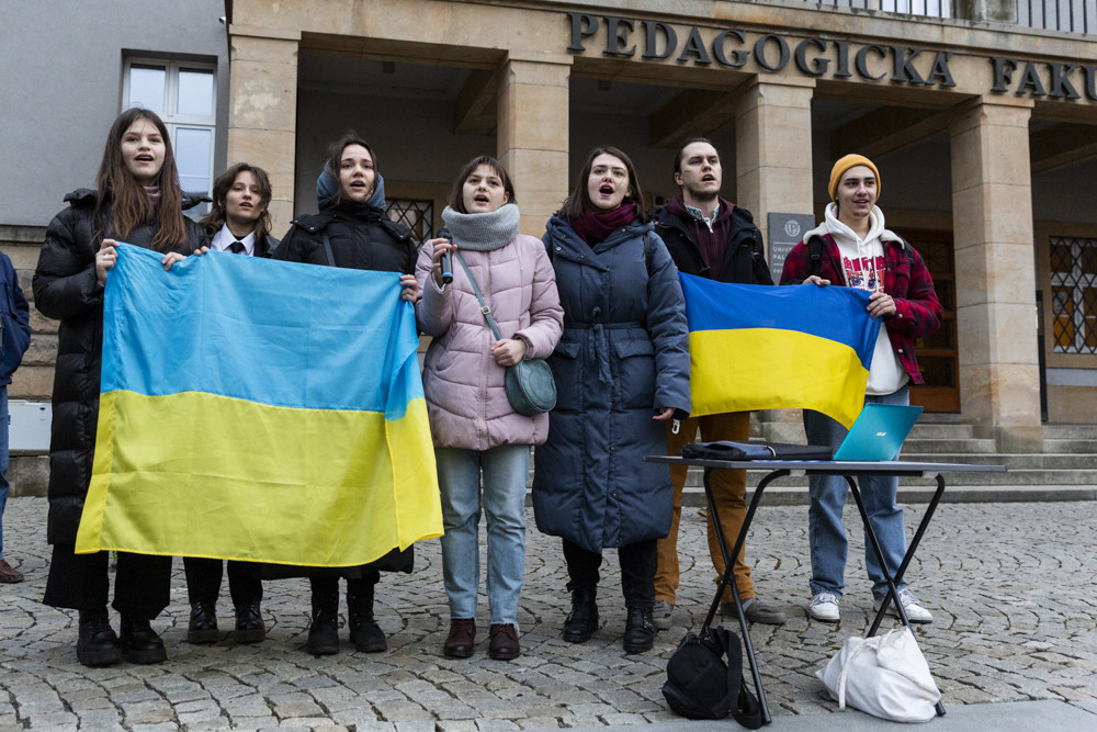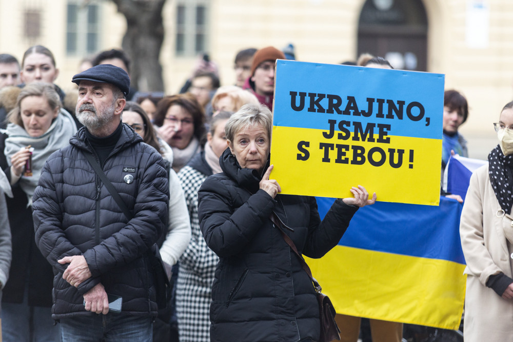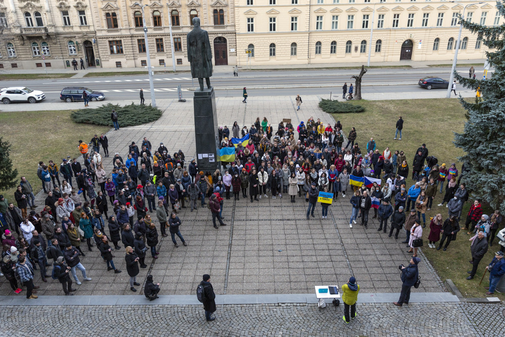 Ukrajino jsme s tebou! Lidé na olomouckém náměstí vyjádřili podporu napadenému státu