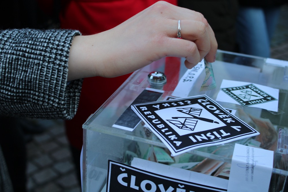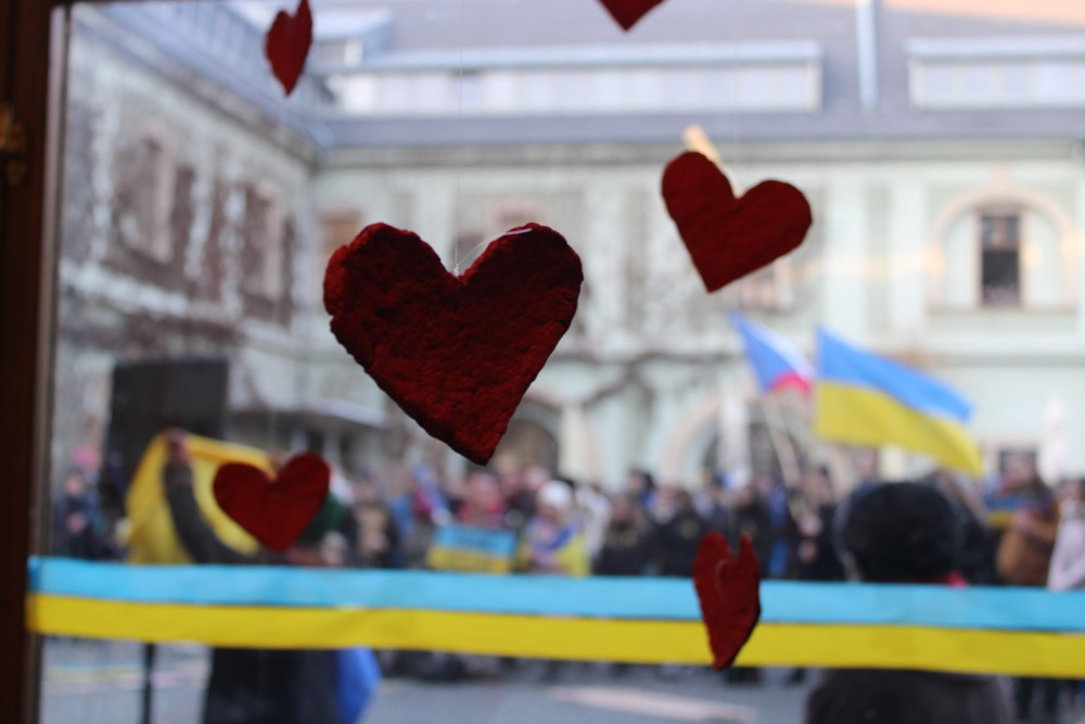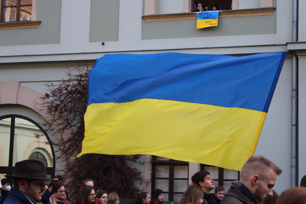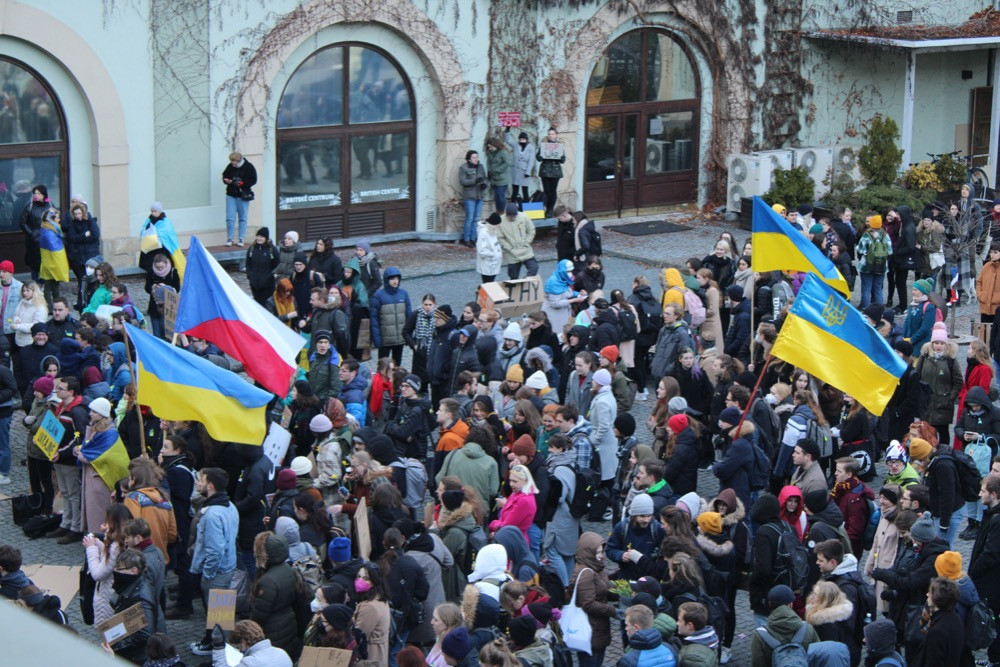 Plné nádvoří na Zbrojnici. Studenti přišli vyjádřit podporu Ukrajině