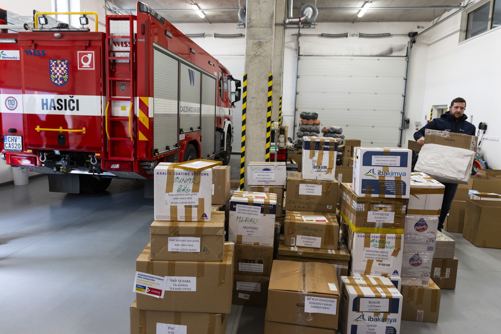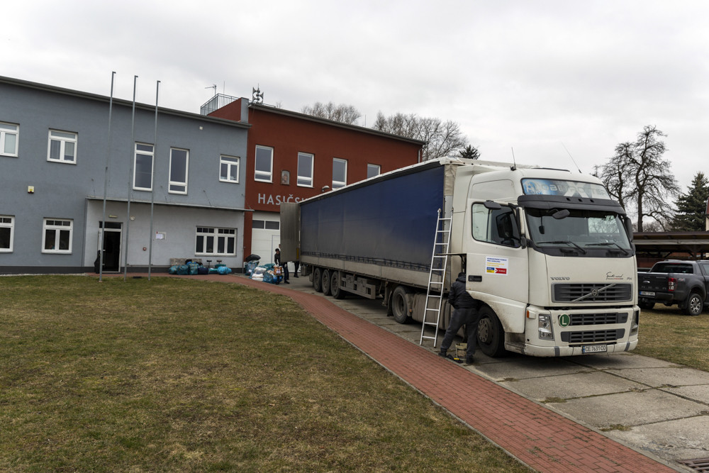 Jídlo, deky, pleny i termovize a elektrocentrály. Z kraje míří na Ukrajinu kamiony s pomocí - hasičská zbrojnice ve Chválkovicích