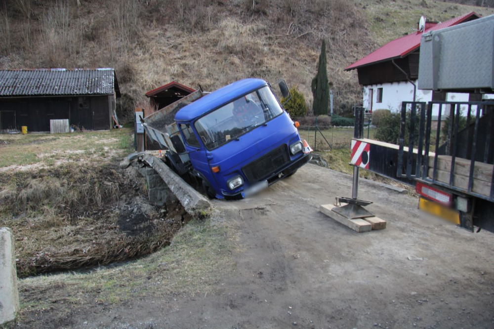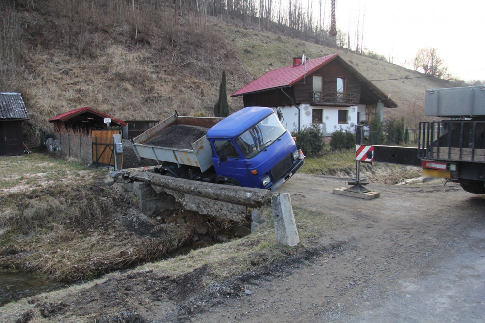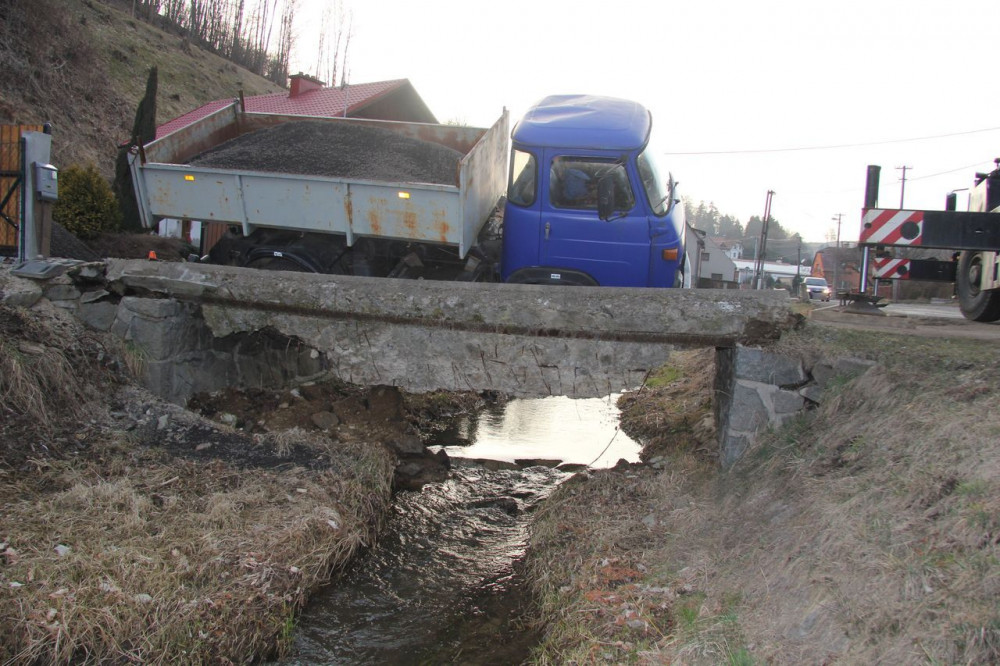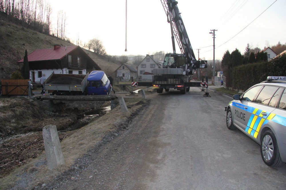 Pod nákladní avií se v Zábřehu propadl most. Vůz musel vyprostit jeřáb