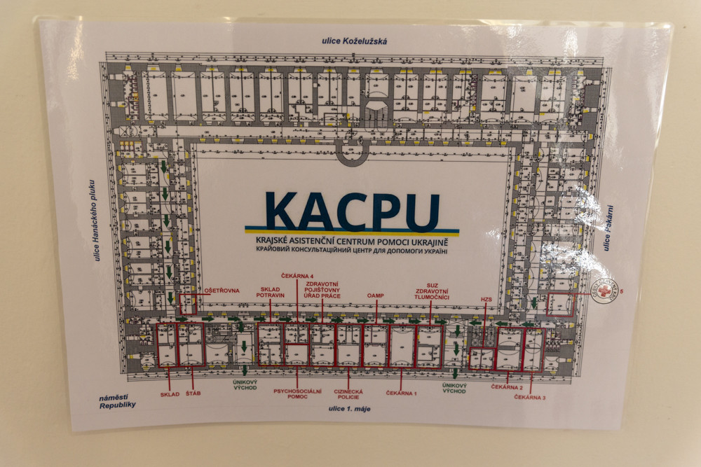 Krajské asistenční centrum pomoci pro Ukrajinu v Olomouci v budově Hanáckých kasáren