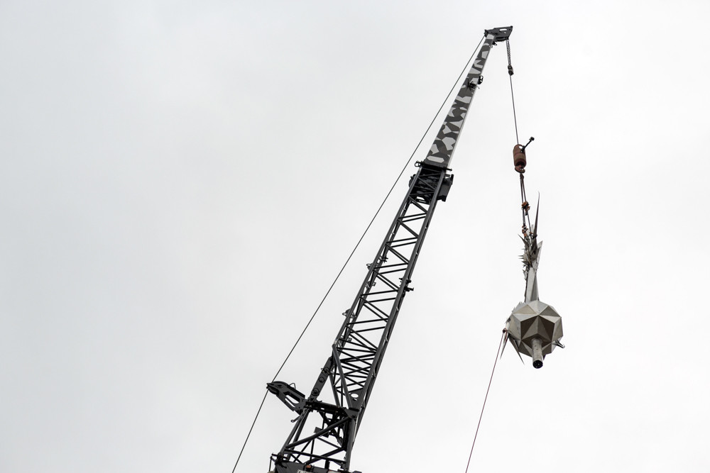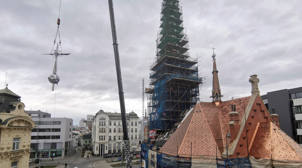 Na věži Červeného kostela je nový kříž. Originální dílo má tři a půl metru