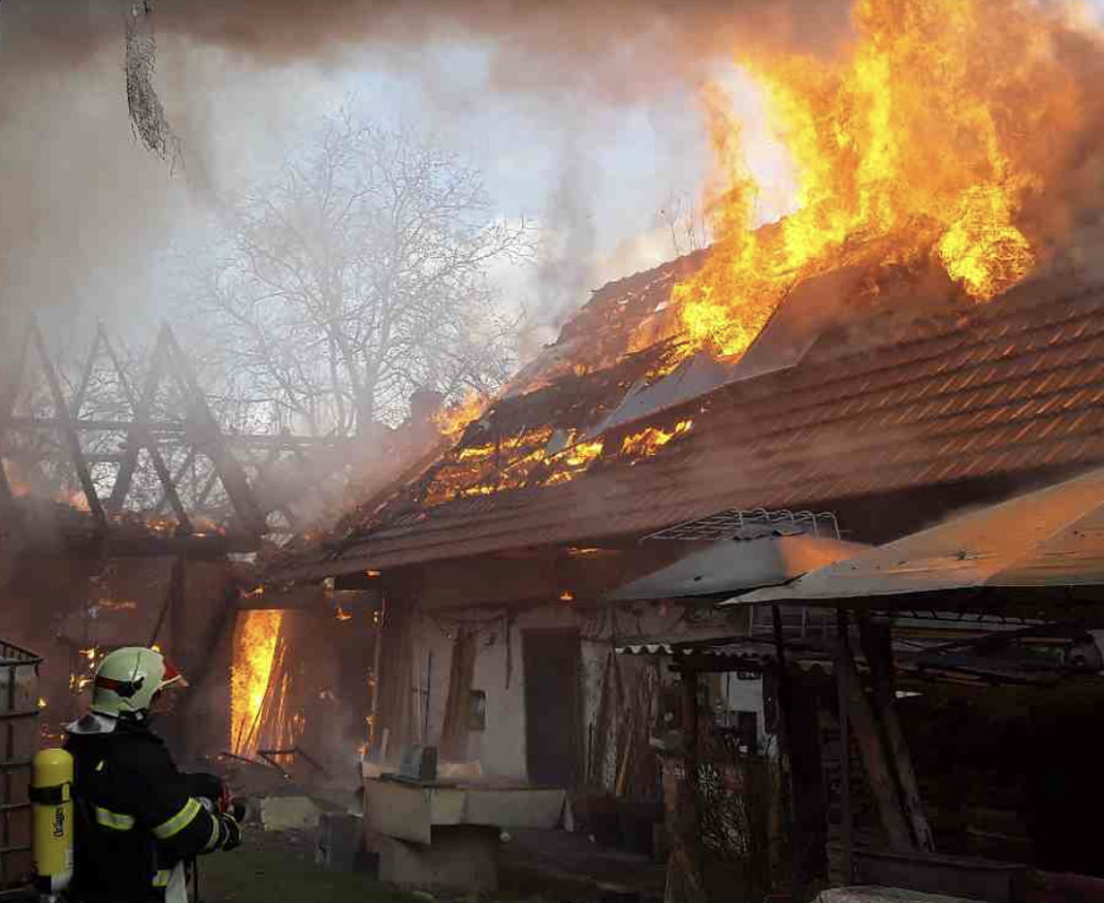 Hasiči bojovali s rozsáhlým požárem budov na Hranicku. Kouř byl vidět z velké dálky