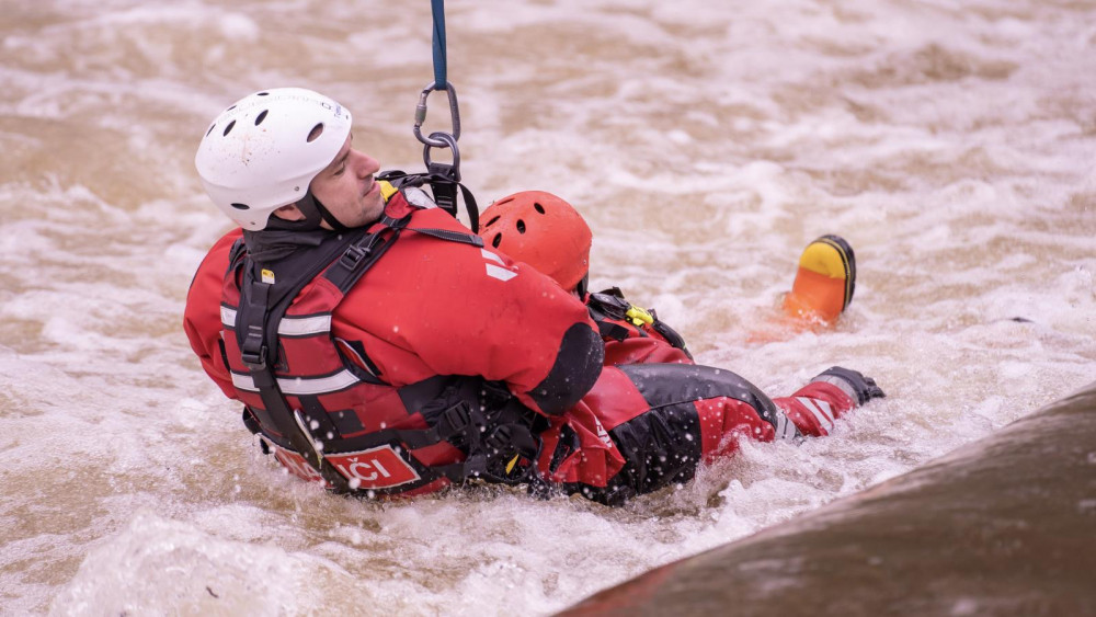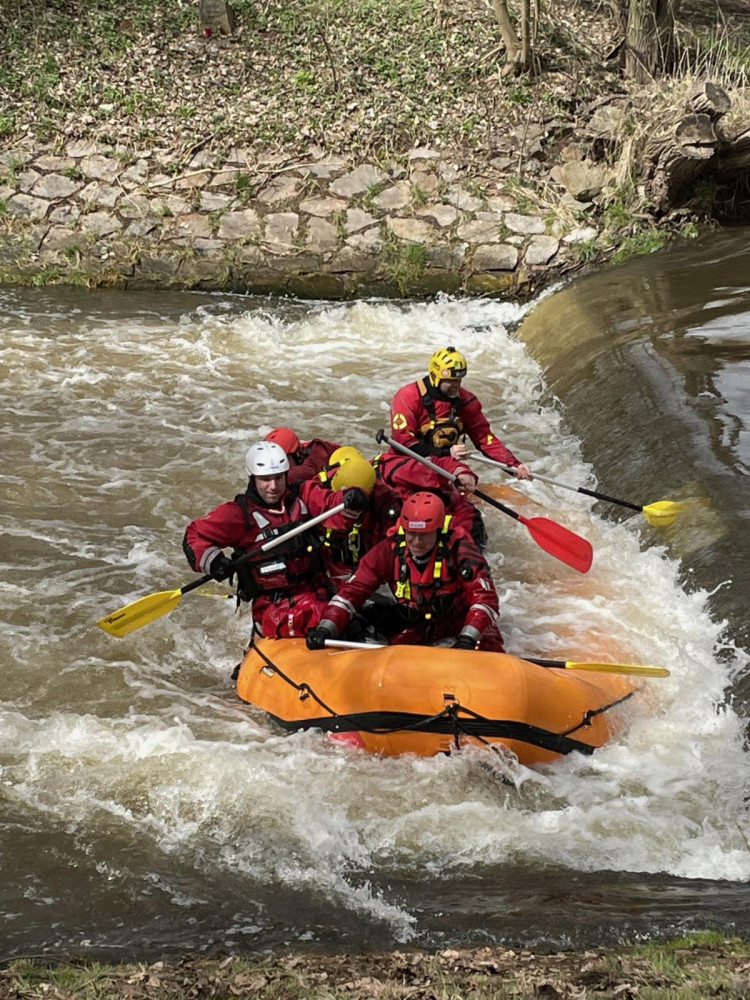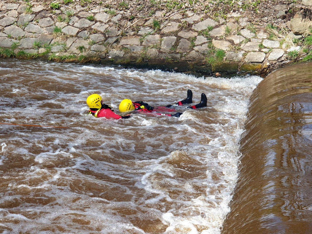 Hasiči trénovali, jak zachránit tonoucího, který se topí v jezu. Většinou jde o sekundy