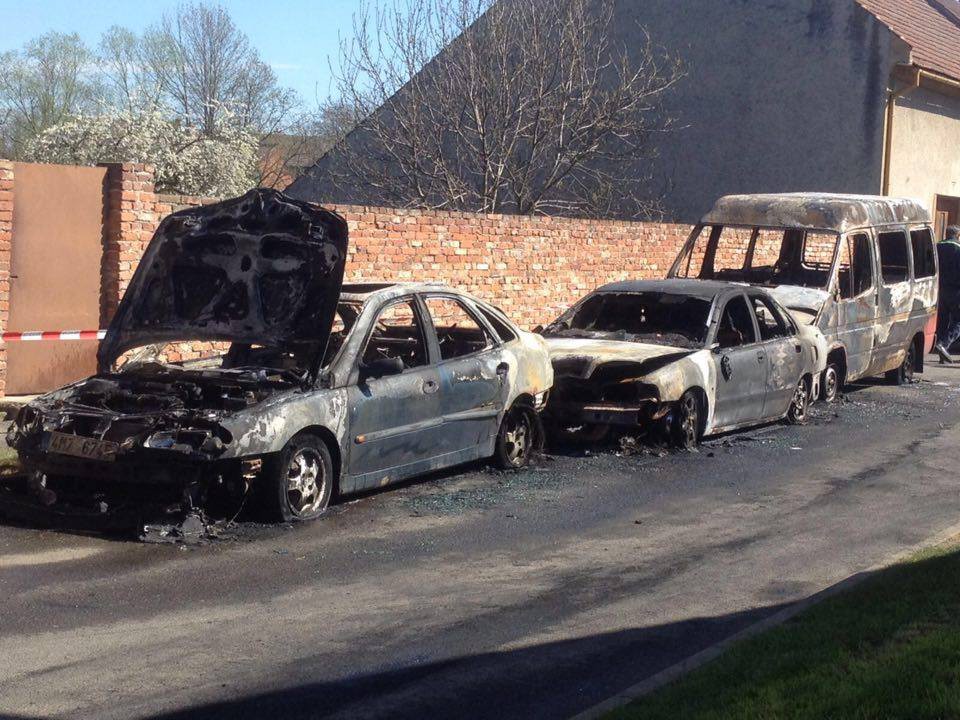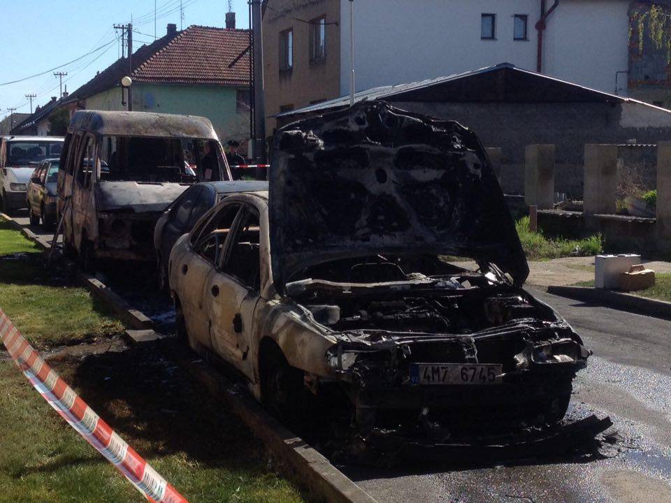 FOTO: Hasiči ráno hasili čtyři hořící auta, není vyloučeno, že je někdo úmyslně zapálil