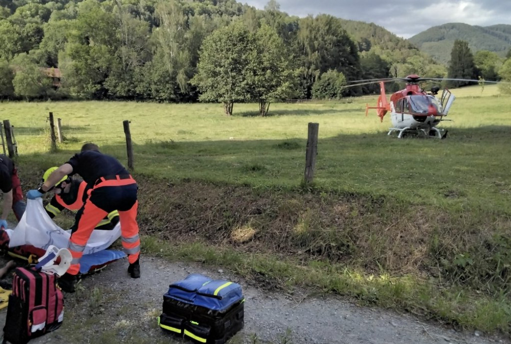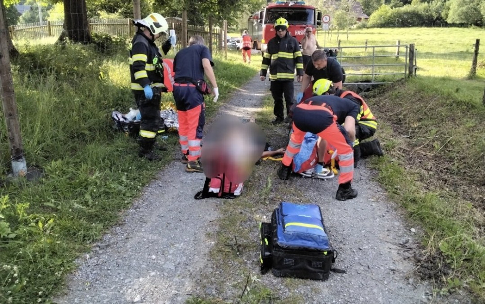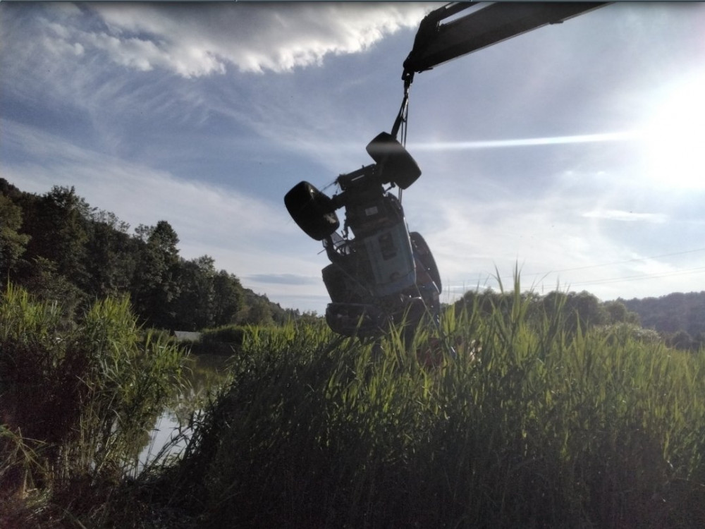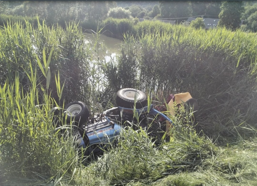 Při sekání trávy se ve Vernířovicích malý traktor převrátil do rybníka. Řidič se málem utopil