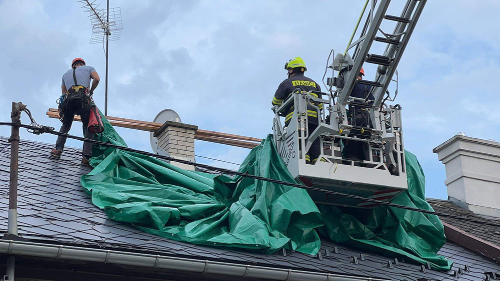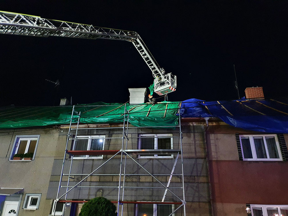 Hasiči provizorně zajistili část střech v průběhu noci, další škody se ukázaly s rozedněním