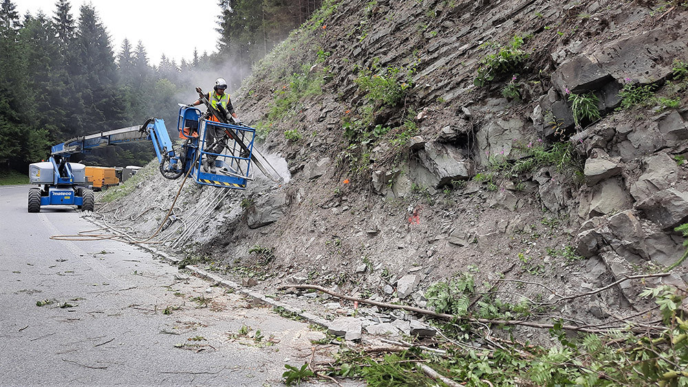 Zásah proti skalnímu řícení. Svah u Písečné zabezpečí sítě