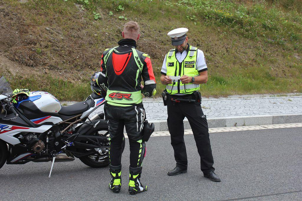 VIDEO: Přes plnou v zatáčce. Policisté kontrolovali na Červenohorském sedle nejen motorkáře
