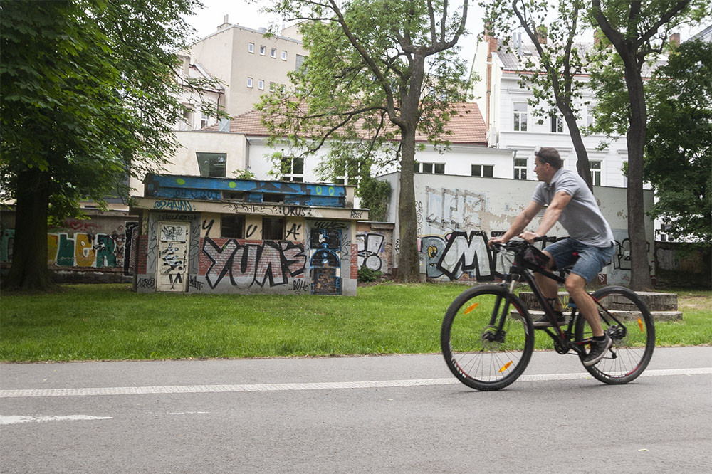 Zchátralá budova toalet v Čechových sadech v Olomouci