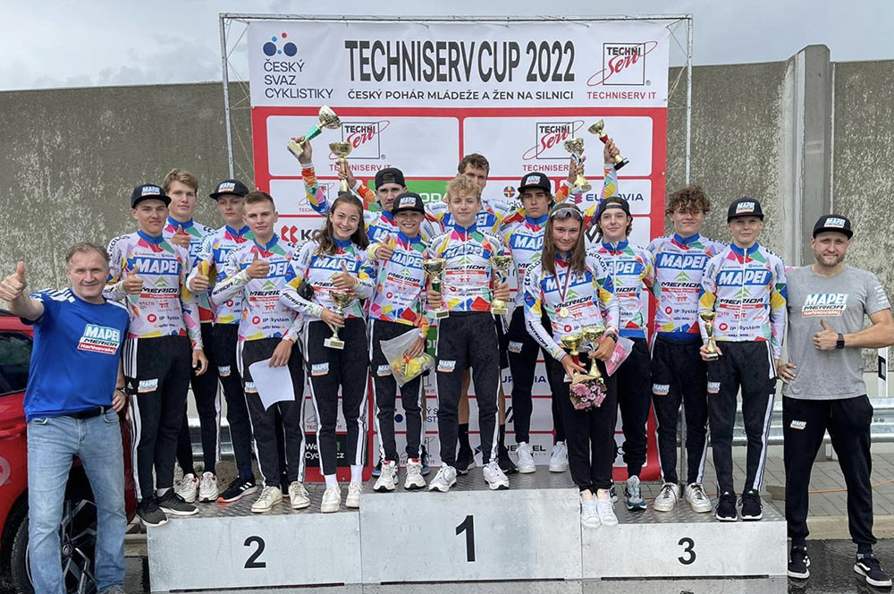 Vítěz Českého poháru v juniorech, kadetkách a starších žácích Mapei Merida Kaňkovský s trenéry Jiřím Kaňkovským st. (vlevo) a Jiřím Kaňkovský ml. (vpravo).