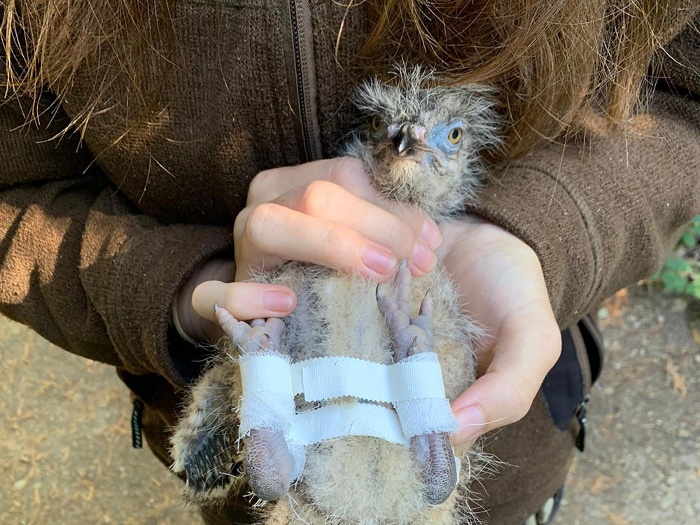 Na Svatém Kopečku pečují o mládě seriemy. Ptáče po zdravotních nesnázích roste jako z vody