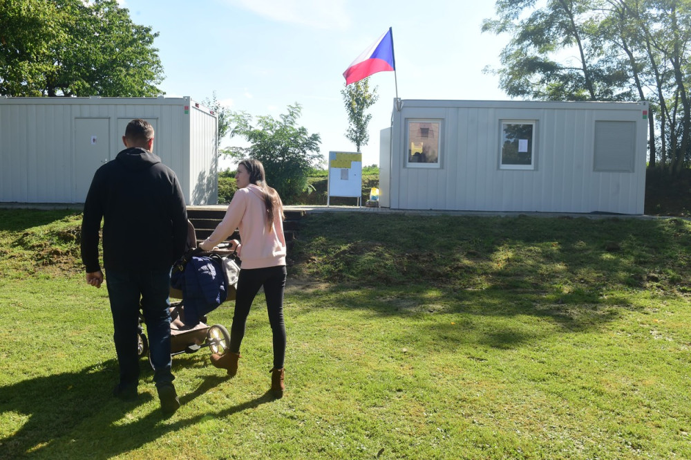 VOLBY 2022: Lidé volí v kině, barokní sýpce nebo ve fotbalové kabině. V Lipňanech zamířili do unimobuňky