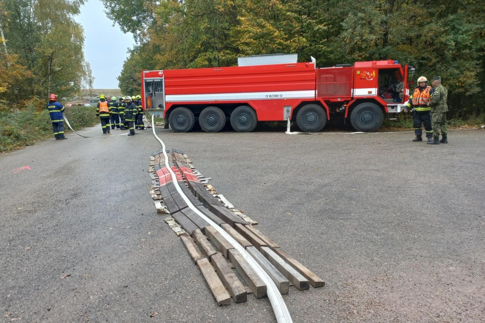 Stovky hasičů a stříkačky Triton a Titan: vojenský újezd u Prostějova hostil speciální cvičení